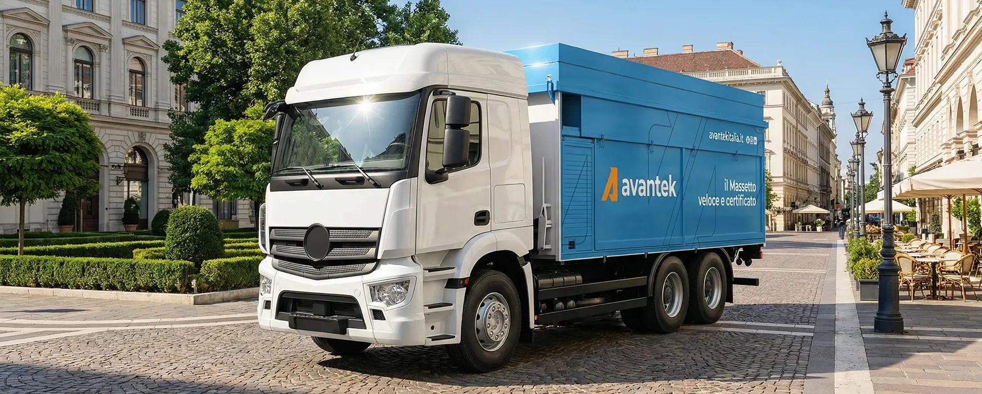 Un impianto mobile automatizzato che consente la produzione del massetto direttamente in cantiere, fino a un’altezza di cento metri. Ogni fase è controllata per garantire continuità dell’impasto, precisione nei dosaggi e qualità costante del risultato finale.